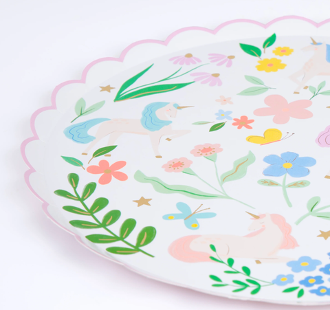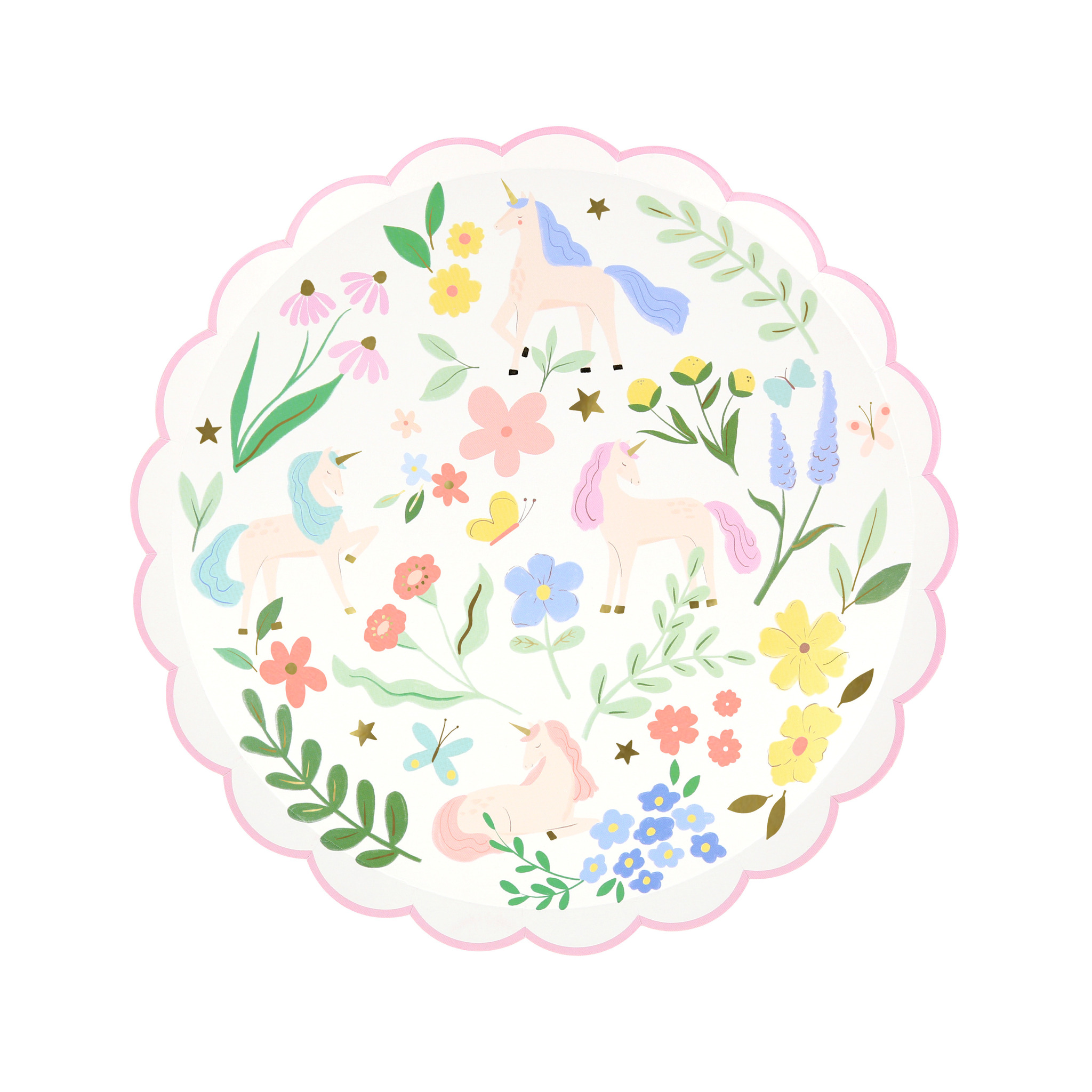 Сочетание единорогов и луговых цветов — идеальное сочетание для вечеринок. Эти бумажные тарелки со стильным ажурным краем мгновенно сделают вашу вечеринку в стиле единорога или принцессы поистине волшебной. Отлично сочетаются с посудой и декором пастельных тонов.