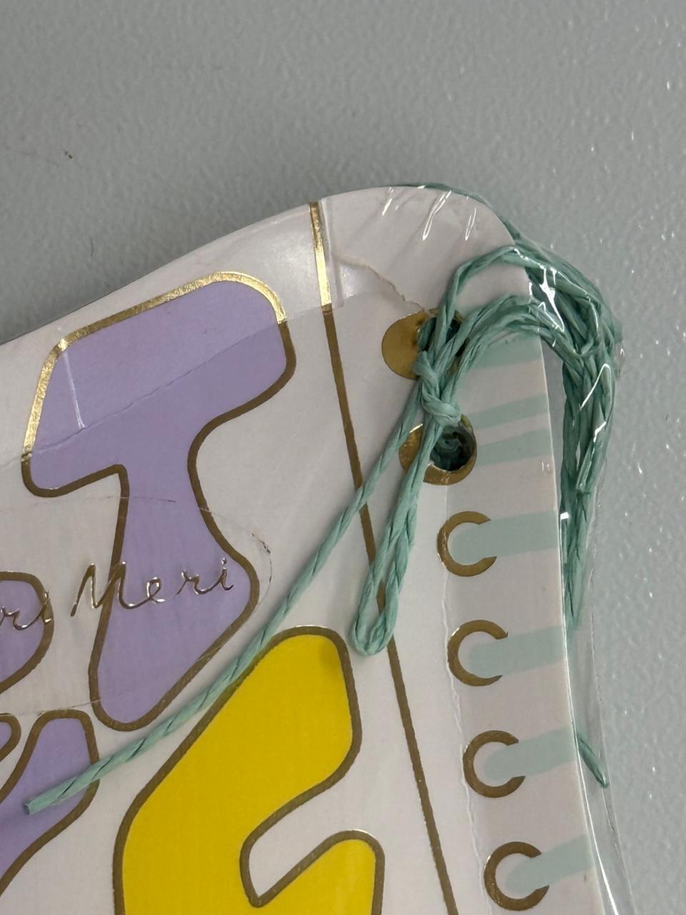 Пусть хорошие времена наступят! Эти великолепные тарелки в форме роликовых коньков с зелеными шнурками из рафии, создающими фантастический эффект, будут потрясающе смотреться на праздничном столе.