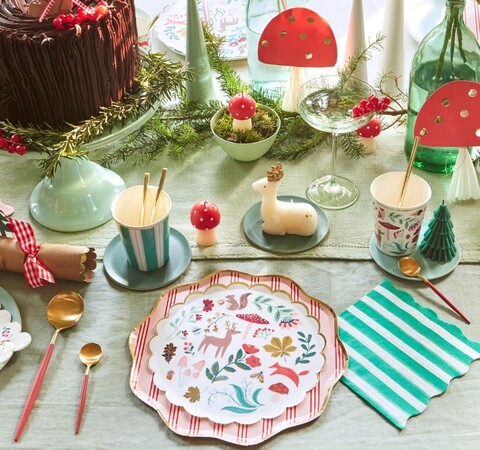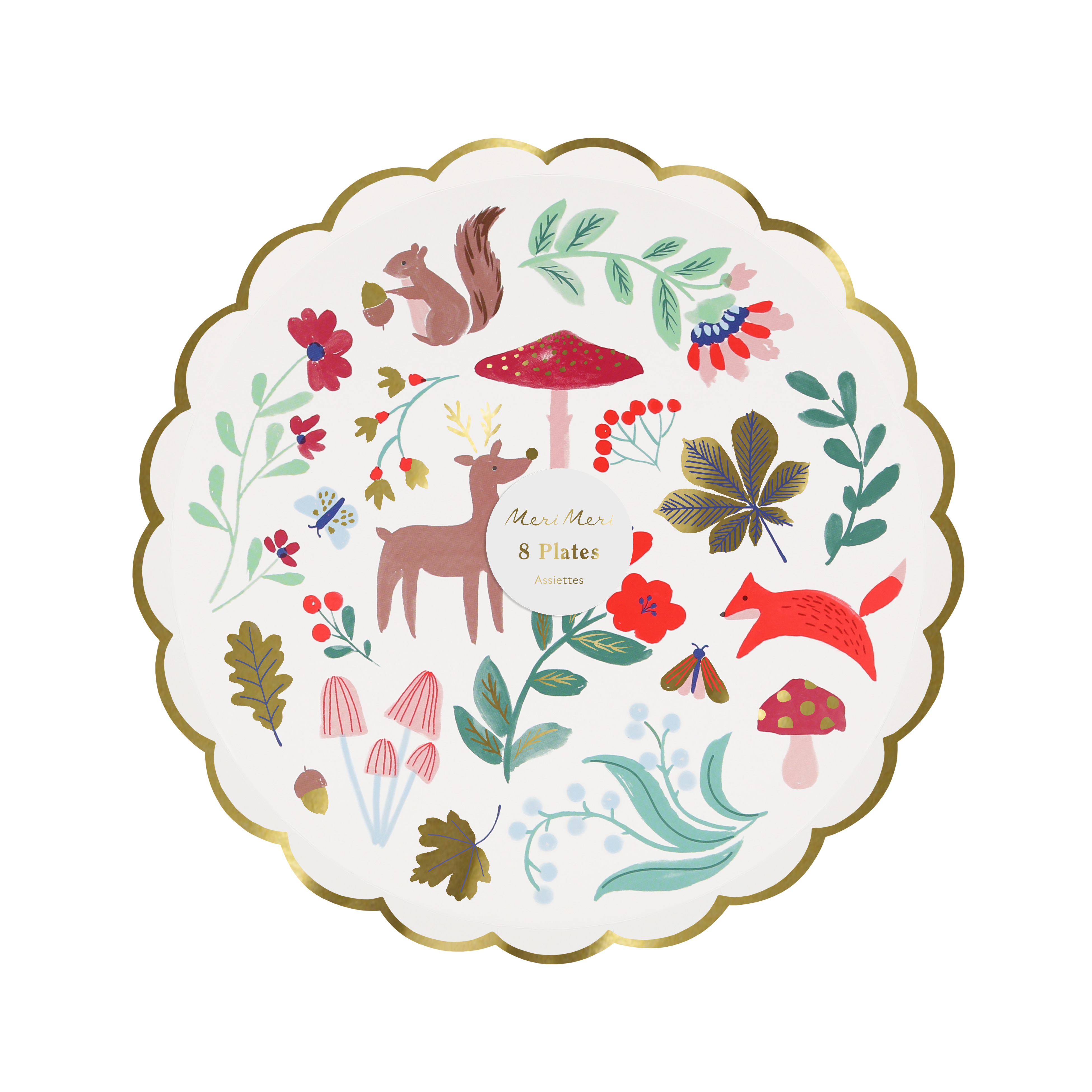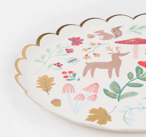 Наше лесное чудо в народно-цветочном стиле приобретает праздничный вид благодаря прекрасным иллюстрациям оленя, лесных животных и цветов с ярким золотым акцентом. Эта коллекция идеально подходит для тех, кто хочет привнести красоту природы в свои рождественские праздники. Эти стильные бумажные тарелки идеально подходят для подачи сладких или несладких угощений, а также для рождественской коктейльной вечеринки.