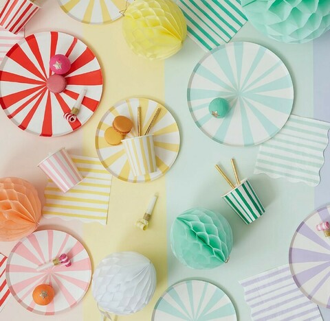 Эти замечательные полосатые тарелки идеально подходят для вечеринки по случаю дня рождения или детского праздника. Они изготовлены из высококачественной бумаги, поэтому практичны и декоративны.