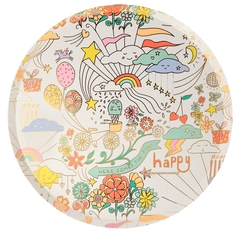 Эти красивые тарелки с веселыми принтами идеально подойдут для любого праздника, ведь на них изображены красочные облака, солнце, воздушные шарф и слова "Happy"и" Here comes the fun".В набор входит 8 штукРазмеры: 260 x 260мм