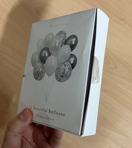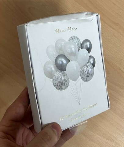 - В наборе 12 воздушных шаров - по 3 блестящего серебра, белого металлик, белого и прозрачного.