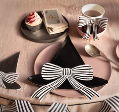 Час ведьм снова настал, так что порадуйте свой маленький шабаш элегантной и жуткой вечеринкой на Хэллоуин. Эти салфетки в виде ведьмовских шляп, украшенные стильными полосатыми бантами, добавят вашему столу чарующего очарования. Их классический чёрно-белый дизайн прекрасно сочетается с остальной посудой и декором на Хэллоуин.