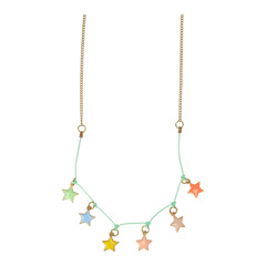 - Эмалевое колье-звезда с мятным вощеным шнуром и золотистой цепочкой.