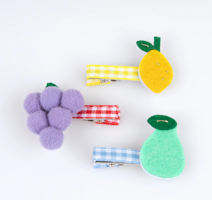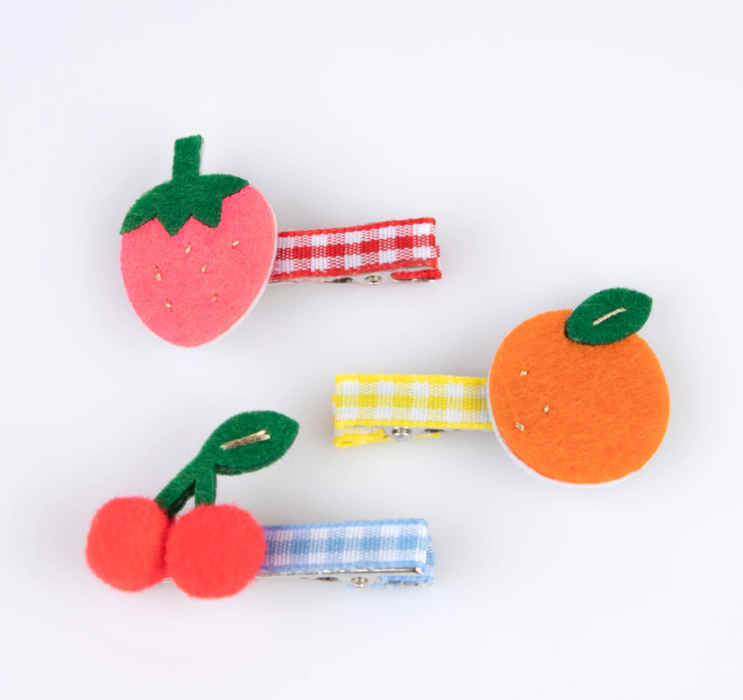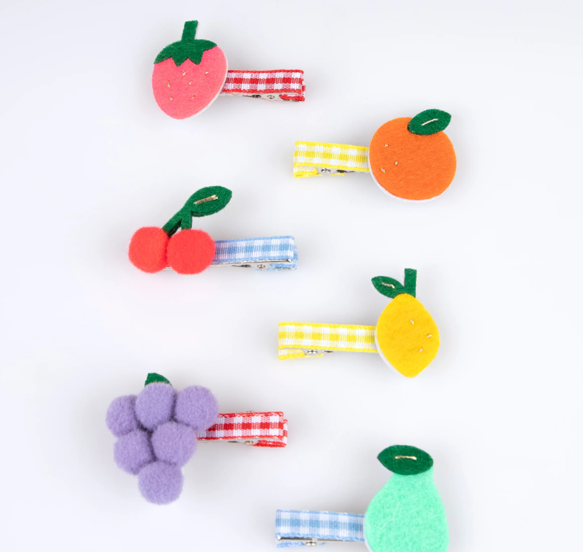Превратите свою причёску в праздник фруктового веселья с этими яркими заколками для волос. Они искусно сделаны из фетра, помпонов и лент в клетку «клетушка» и мгновенно преобразят вашу причёску. Носите их все вместе или по отдельности, они идеально подойдут для вечеринок или для повседневного летнего образа. Идеально подходят для праздничных сумок или в качестве подарка детям и взрослым, которые любят яркие аксессуары для волос.