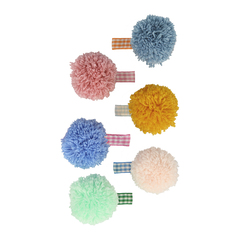 Помпоны - это модный аксессуар, поэтому эти заколки для волос выглядят так необычно! Помпоны тщательно сочетаются с великолепными лентами в мелкую клетку, закрепленными на золотых заколках-зажимах.